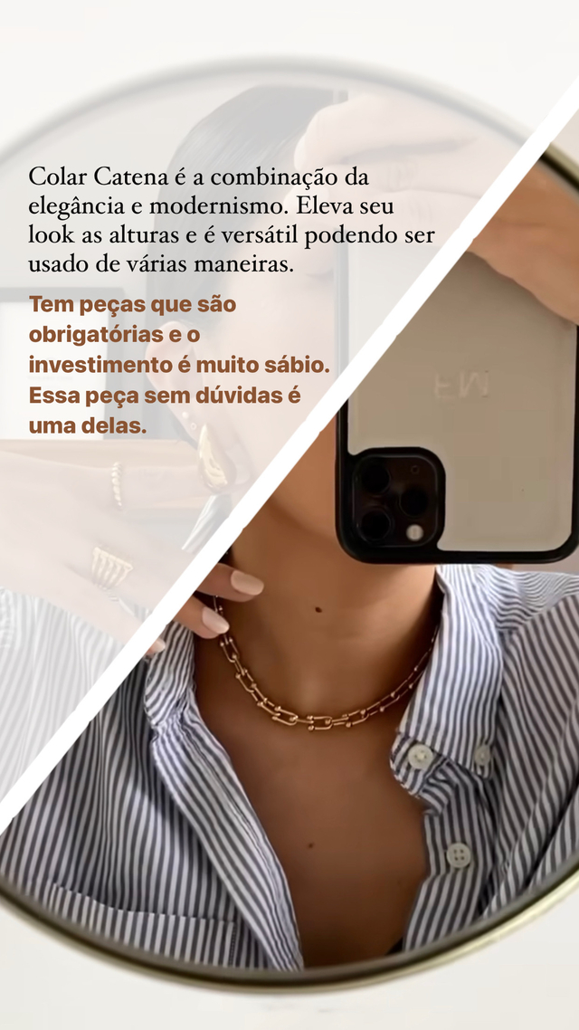 O colar Catena é uma peça contemporânea e versátil que pode fazer parte de visual mais arrojado ou até mesmo mais clássico sem comprometer o estilo.